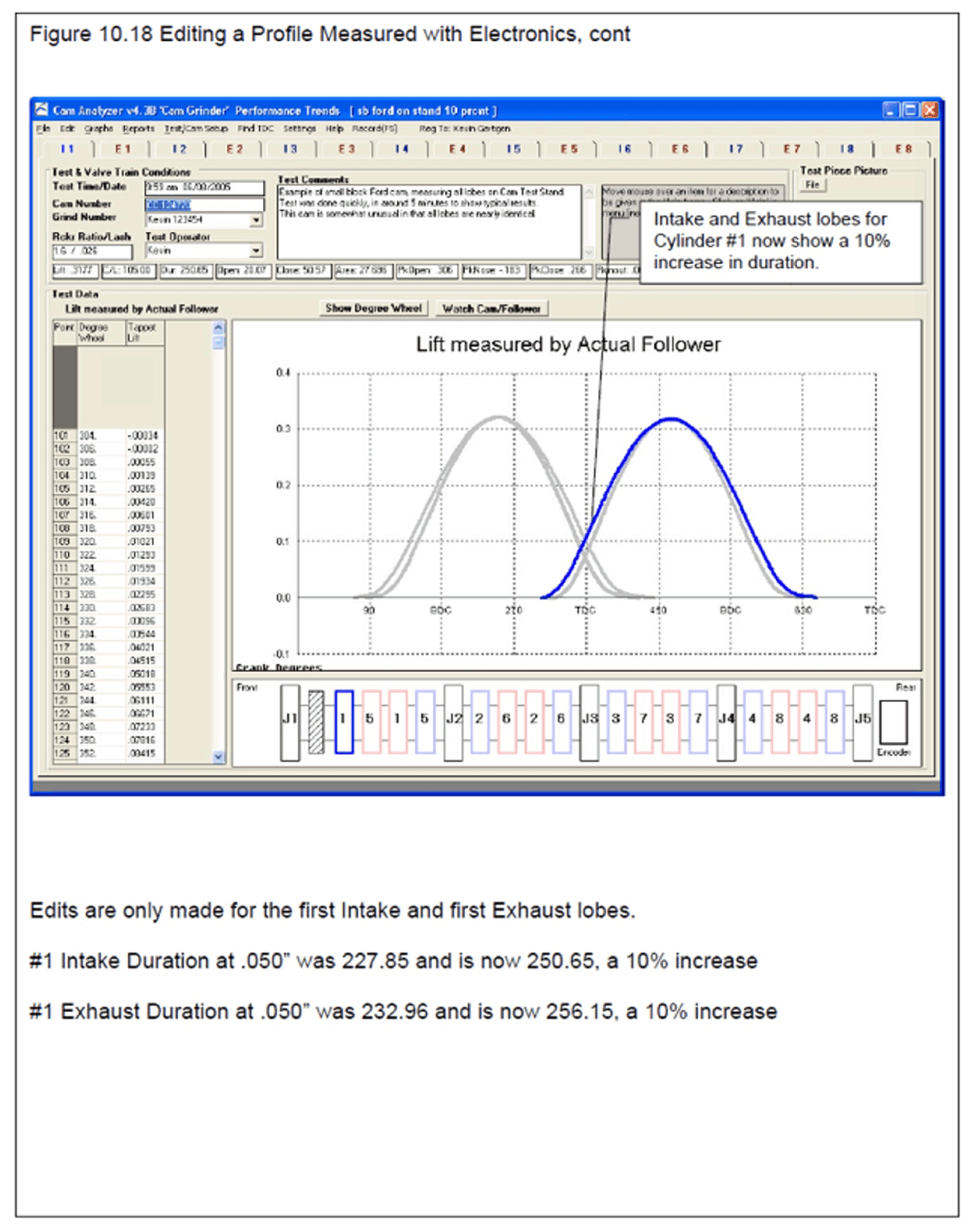 The Cam Grinder version is new for v4.3, and adds several features beyond what the Plus version does. It's features are specially designed for customers who typically grind cams or need to send files to cam grinders for special custom grinds. The Cam Grinder version also gets into more detailed analysis than the typical customer may need. This would include: display actual cam layout and actual cam lobe measurements, measure journals, plus the features listed in paragraph below.