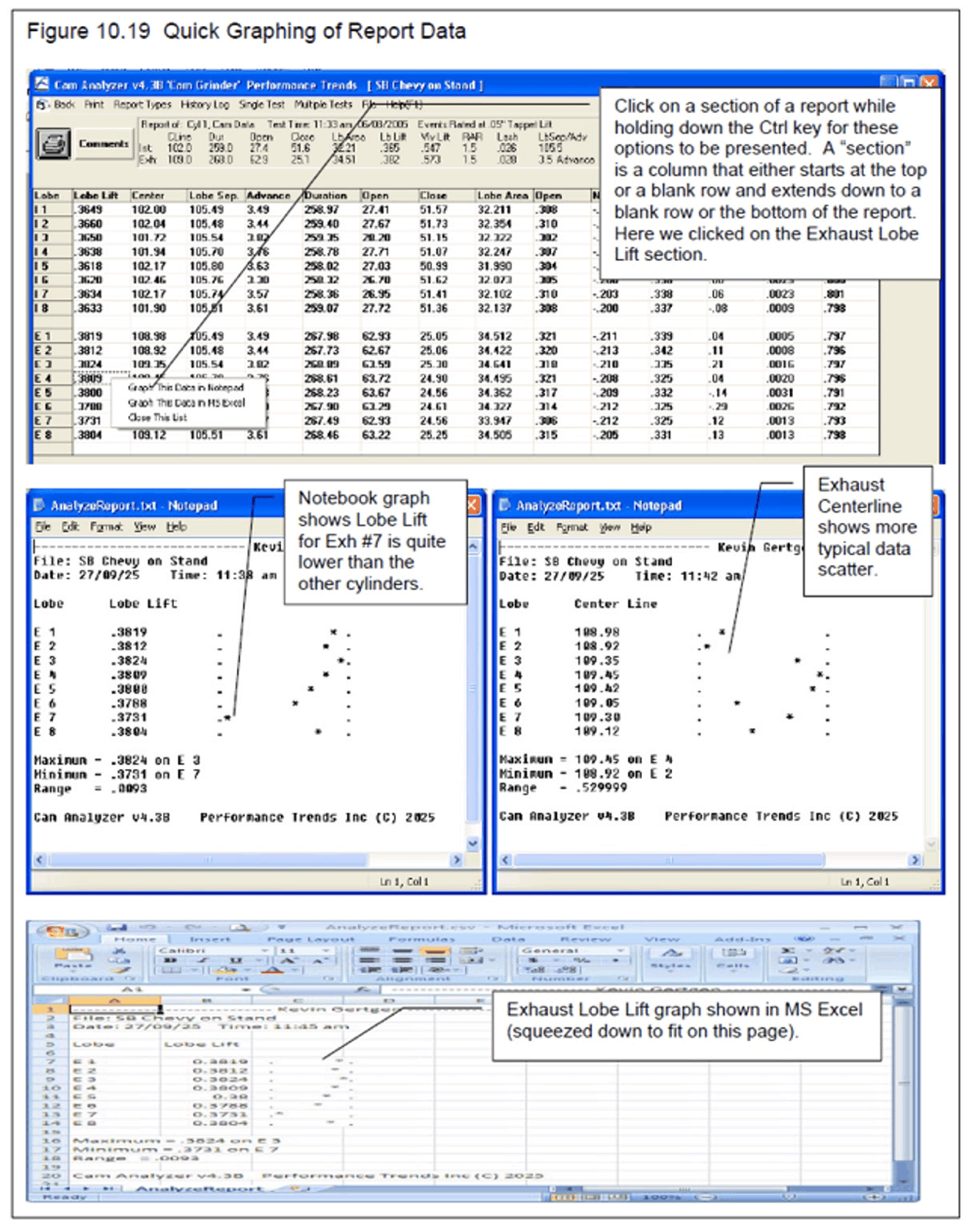 You can select to graph or report this data in 2, 4, 5, 6, 10 or 20 crank deg increments (1, 2, 2.5, 3, 5 or 10 cam deg increments).